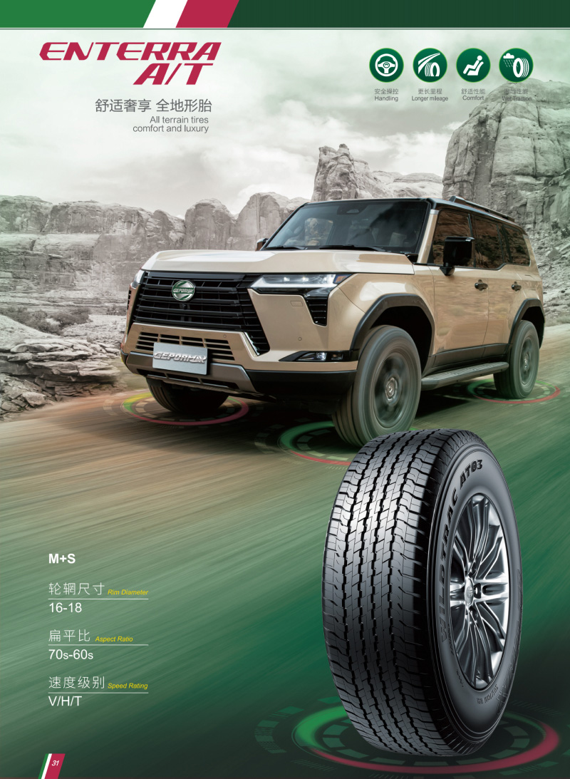 一款優(yōu)秀的全地形輪胎,突破性技術(shù)塑造胎面結構,對各自路況具有良好的適應能力。