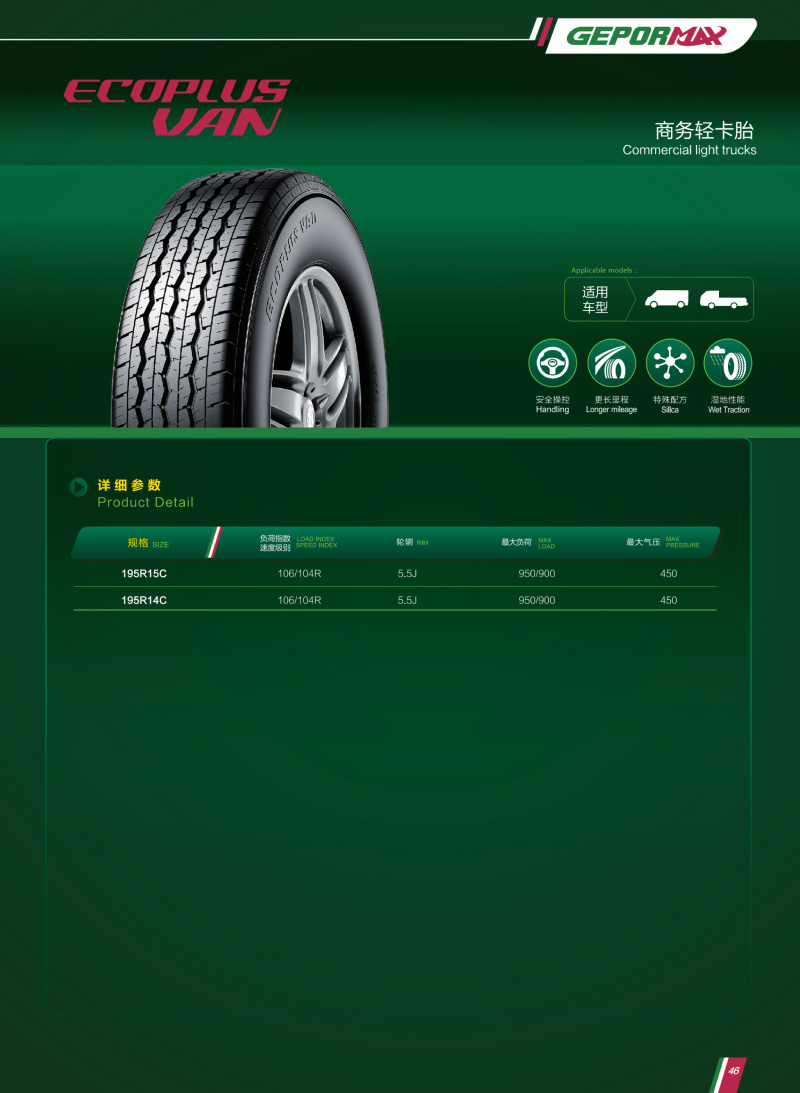 商務輕卡胎,縱向曲折寬溝,提供優(yōu)秀的操控性。強化的胎側結構,更高的安全性。