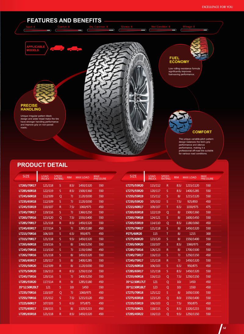 獨特花紋設(shè)計,在非鋪裝路面上具有超強的耐用性和抓地力,是一款適用各種路況的越野專用輪胎。