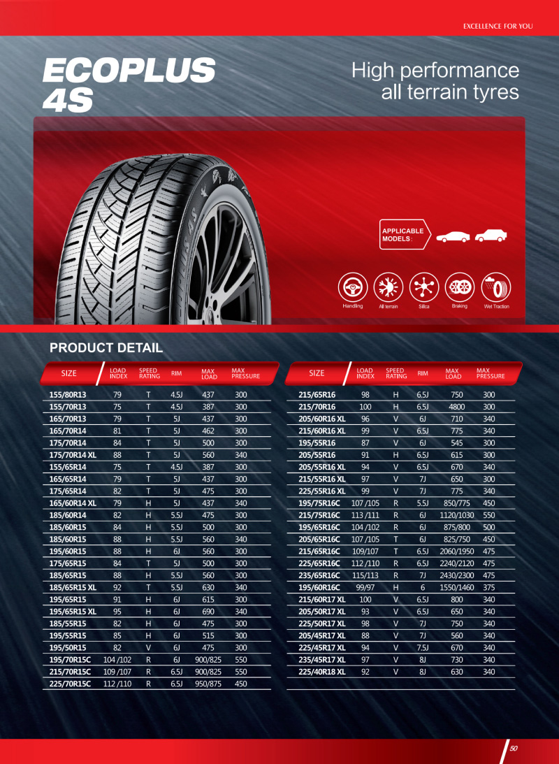 全季節(jié)輪胎,特殊胎面配方,適用雪泥地路況,有效防滑。