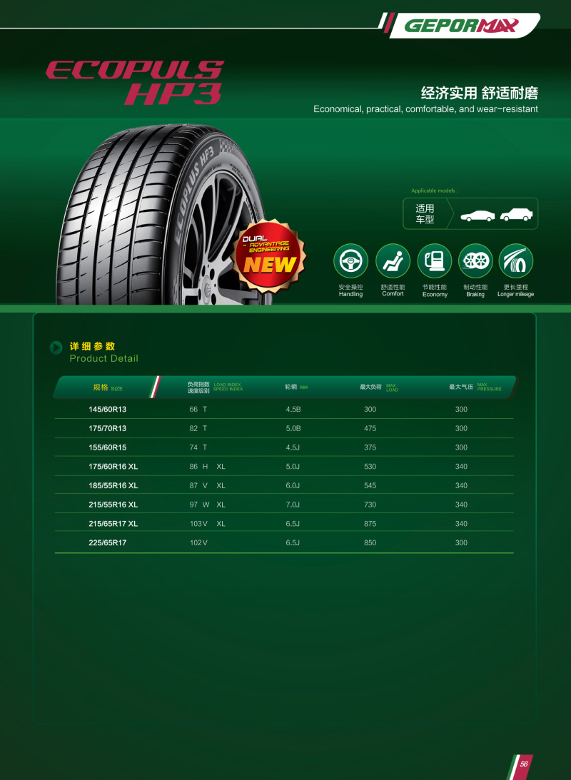 全新升級低滾阻花紋,靜音節(jié)油,經(jīng)濟實用,舒適耐磨。