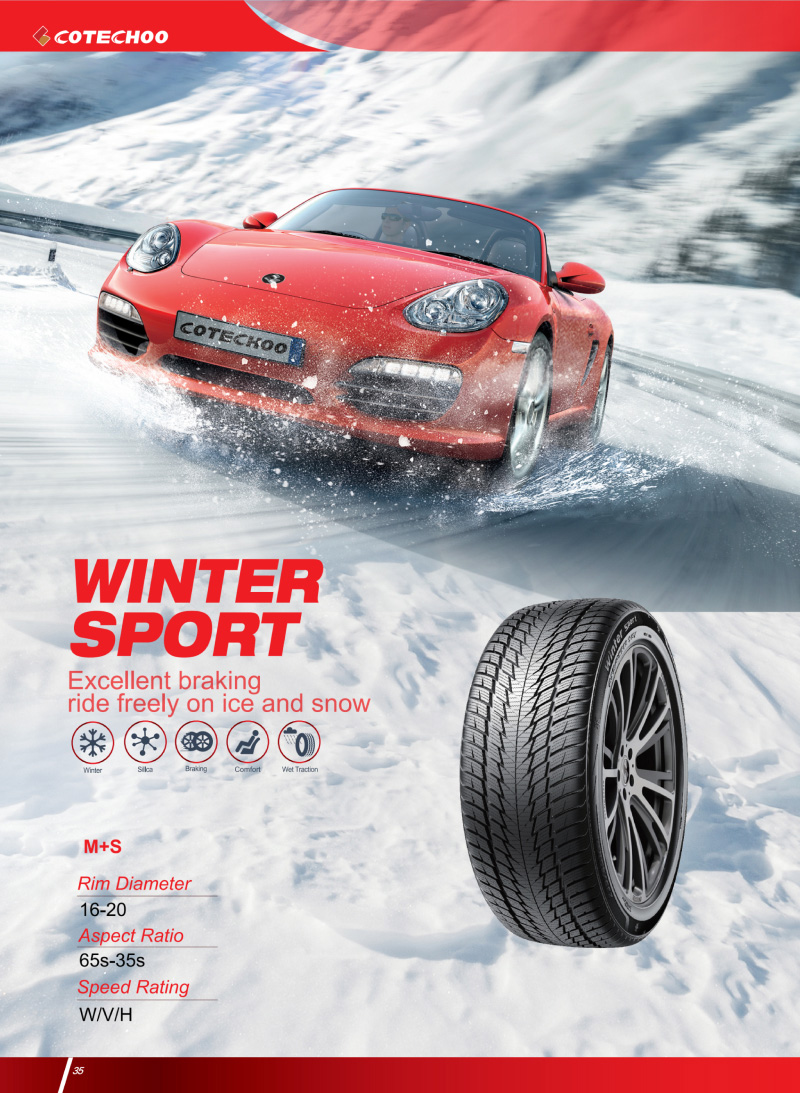 獨特胎面膠料配方及花紋,為輪胎提供良好的牽引力和制動性能,可保證在冬季氣候下的駕駛安全性能。
